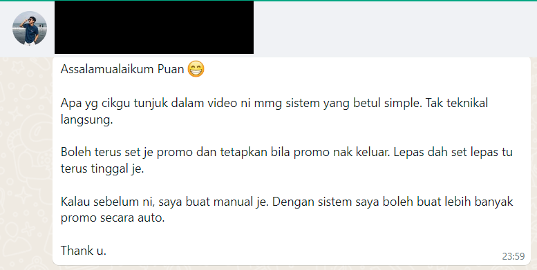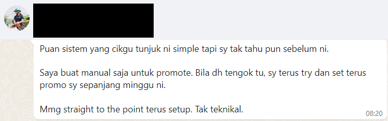 Yang BEST nya, sistem yang saya pakai dalam bisnes saya ni tak perlu apa-apa kos tambahan. Memang 100% PERCUMA. Cuma kena setup sikit jer untuk ianya RUN secara AUTOMATIK.